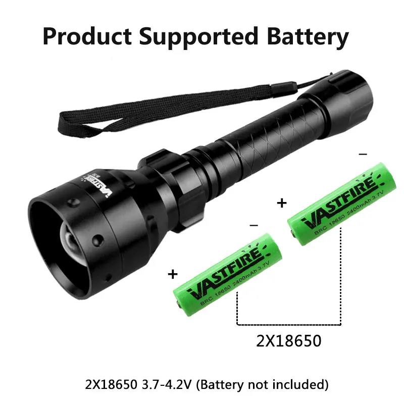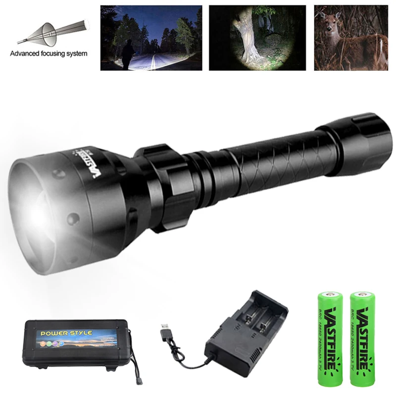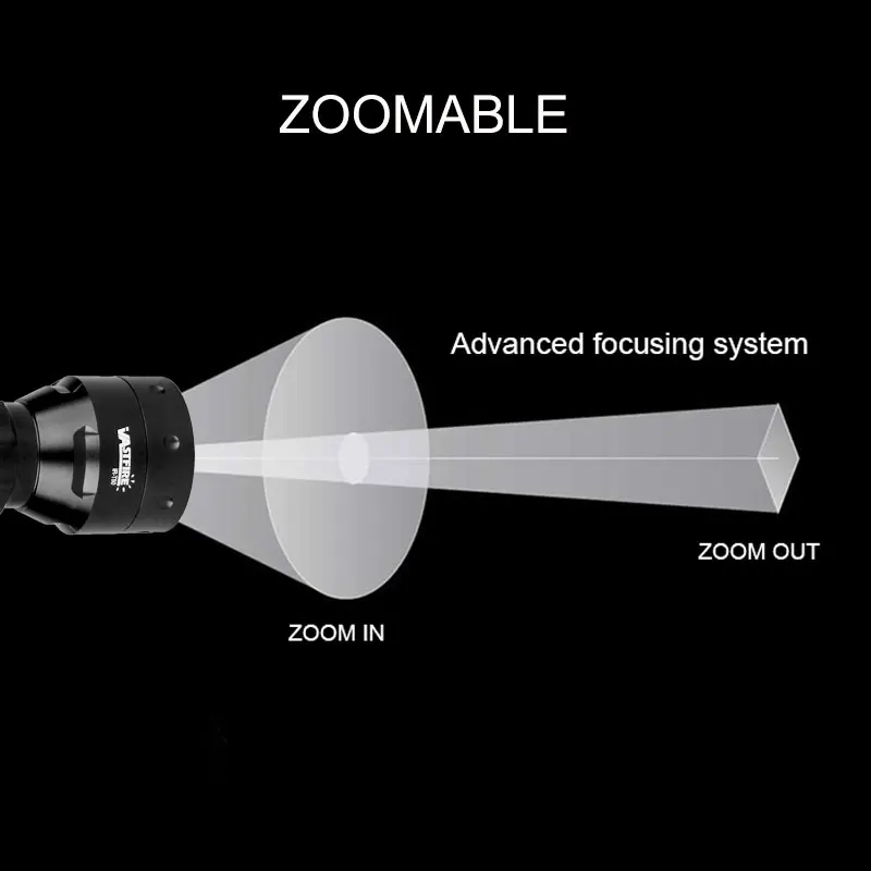 1. Высококачественный чехол для корпуса, не нравится дешевым фонарикам!2. Масштабируемый объектив 55 мм с функцией фокусировки, дальним расстоянием освещения3. Если вы хотите более длительное время использования, рекомендуем использовать 2 шт. 18650 батарей