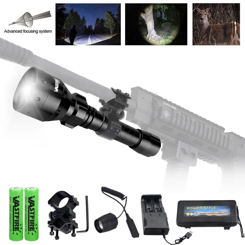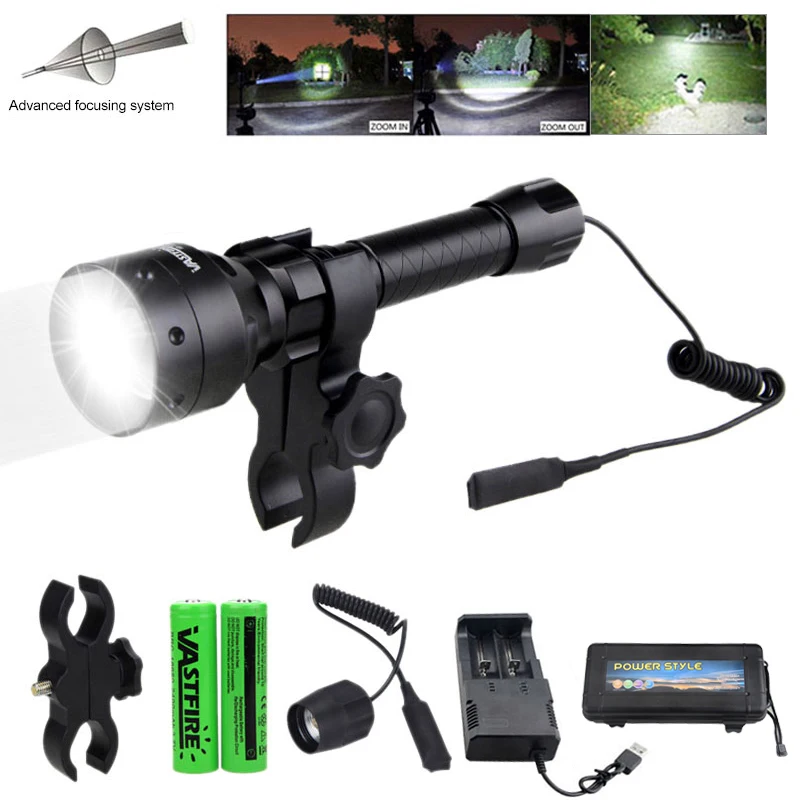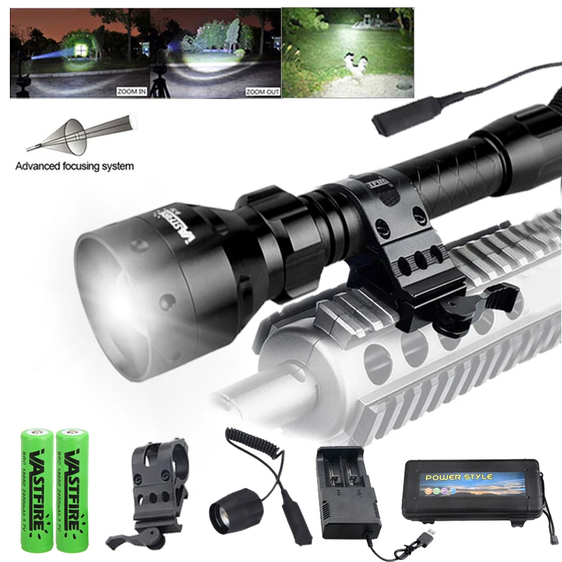 6000 люмен 800 ярдов 55 мм объектив масштабируемый фокус светодиодный охотничий фонарик белый светильник фонарик крепление для прицела для 18650