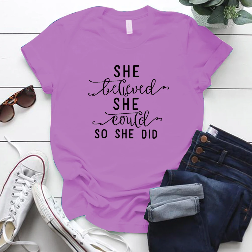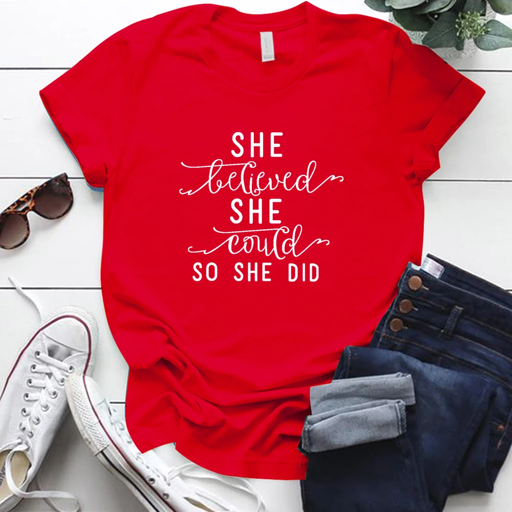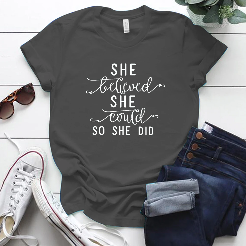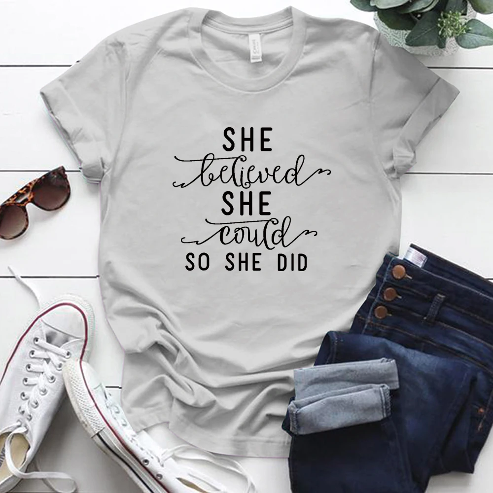 Она верила, что сможет, так что она сделала, с буквенным принтом, женские футболки в стиле Харадзюку, размера плюс S-5xl хлопок, футболка оверсайз, топы для женщин, 2020