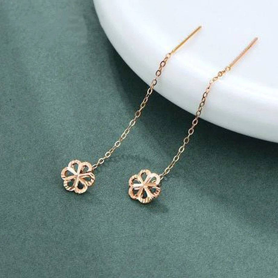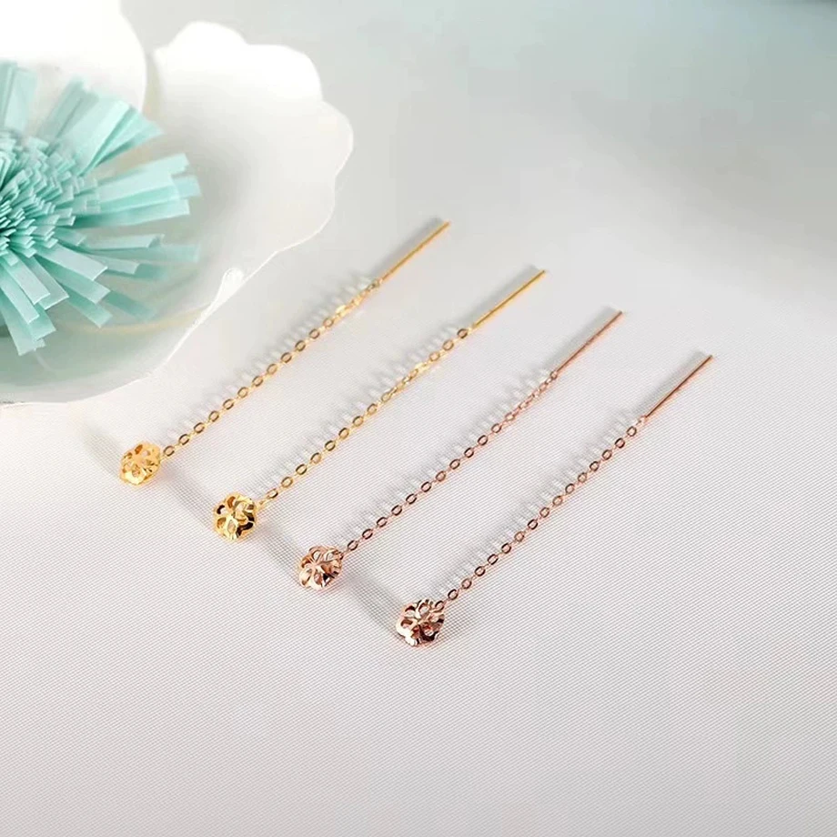 YUNLI настоящим 18К золото висячие серьги из чистого AU750 золото ц...