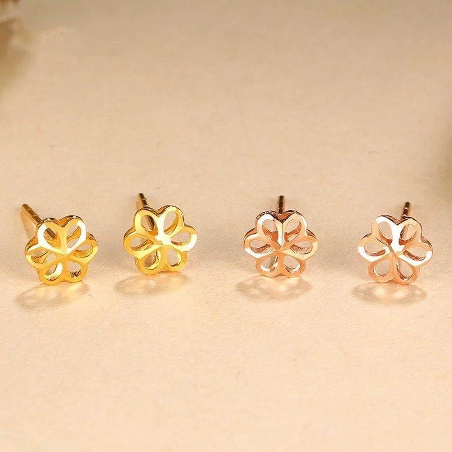 Серьги-гвоздики женские из 18-каратного золота, с цветком сливы, E5...