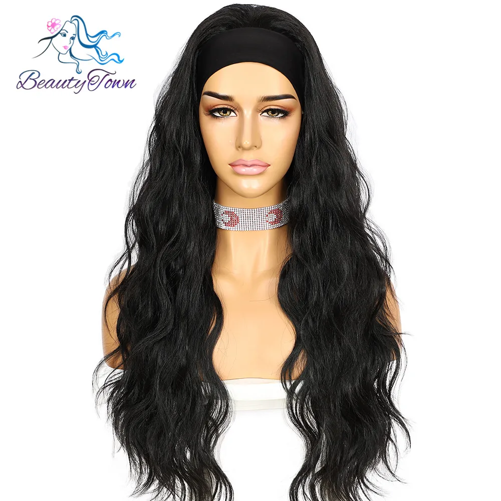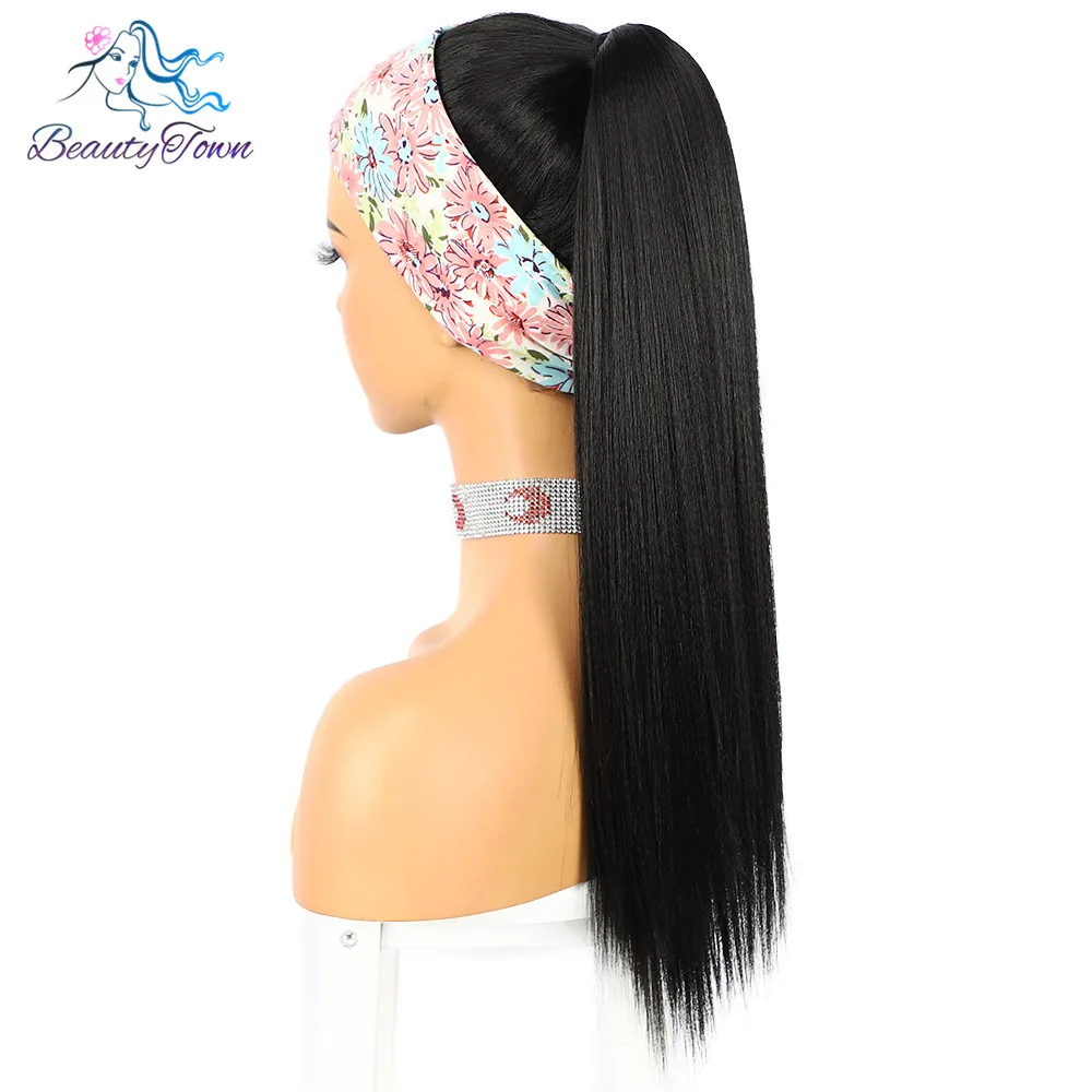 26 дюймов длинные прямые Кудрявые Волнистые Черные Парики Yaki с головной повязкой для женщин для ежедневного свадебного торжества путешествий бесклеевой парик 2 бесплатные повязки подарок