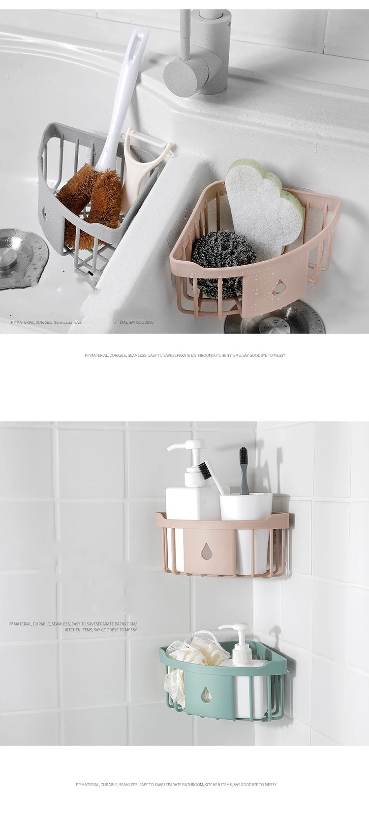 Настенная самоклеящаяся треугольная стойка для душа, туалетные принадлежности, бесплатные пробивки, аксессуары для ванной и кухни, дренажная полка для хранения