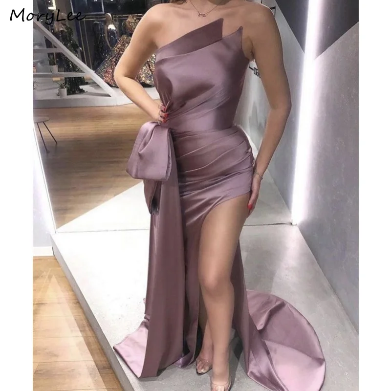 Женское атласное платье-Русалка, шелковое плиссированное платье без рукавов, с Боковым Разрезом, на молнии сзади, для выпускного вечера