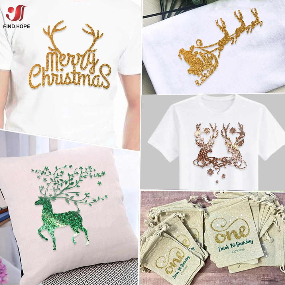 Рождественская блестящая Термотрансферная виниловая футболка 30*25 см50 см, рулон с термоклеевым покрытием, виниловая футболка для творчества