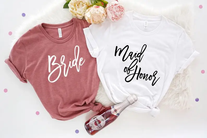 Футболка для невесты и подружки невесты, милая хлопковая Футболка с круглым вырезом и коротким рукавом, женский топ с графическим рисунком