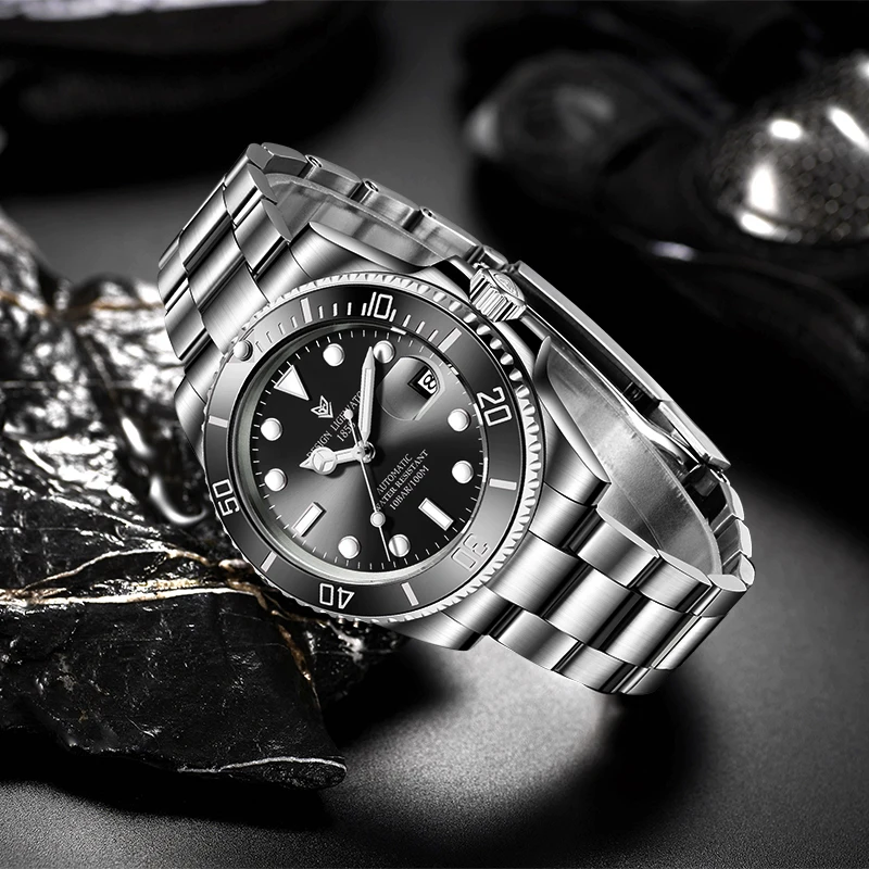 Часы мужские механические с автоподзаводом, из нержавеющей стали, водонепроницаемые, 2021
