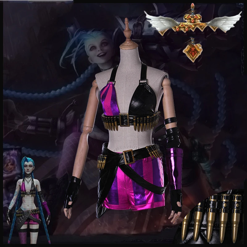 Новинка, костюм в стиле игры ВНО, искусственная кожа Jinx, оригинальная Волшебная униформа, синие парики, волосы для женщин и девушек, одежда для вечеринки