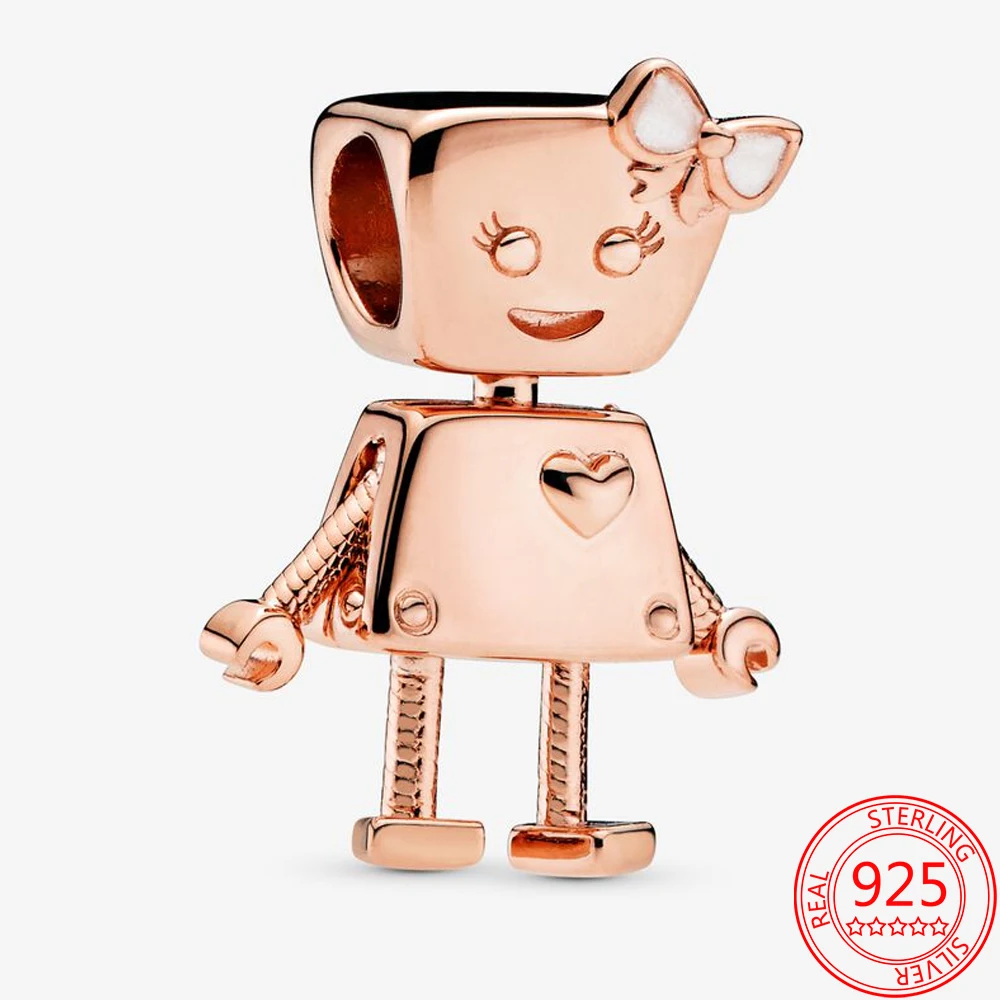 Шарм-подвеска Bella кулон робот из серебра 925 пробы с розовой эмалью, подарок на Рождество
