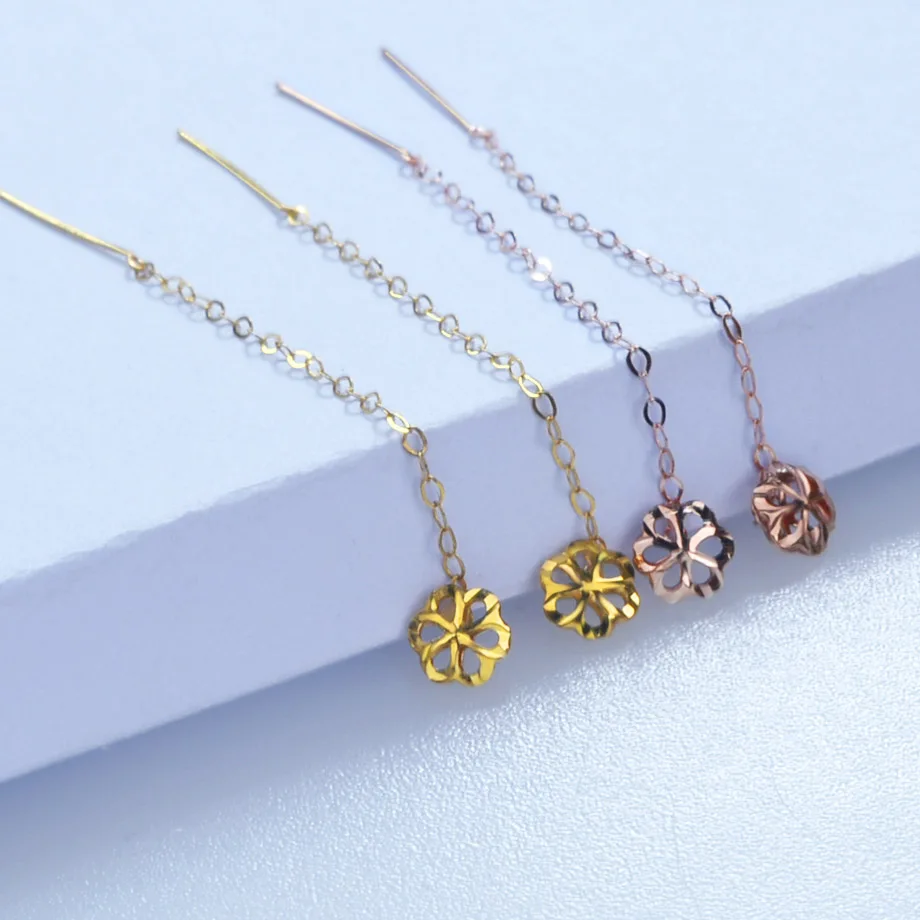 YUNLI настоящим 18К золото висячие серьги из чистого AU750 золото ц...