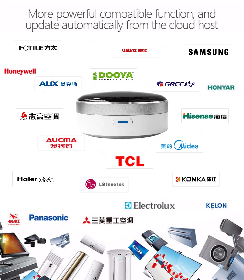 Поддержка всех ИК-enab светодиодный бытовой техники, включая телевизор, стиральную машину, кондиционер, вентилятор, dvd-плеер, ИК светодиодный светильник с затемнением, вытяжка диапазона...
