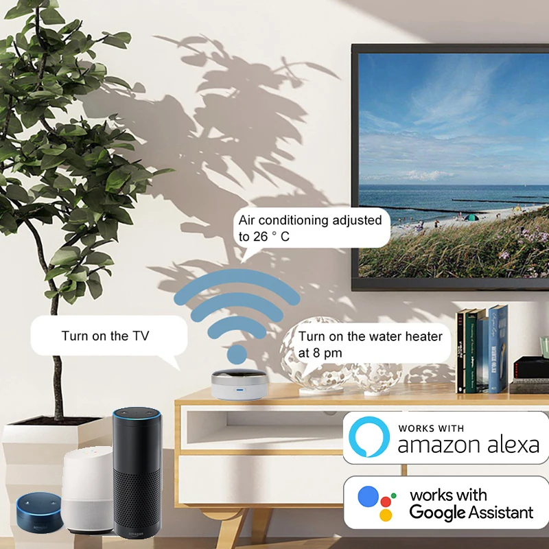 Подключив приложение к Amazon Echo, Google Home, вы сможете управлять голосом вашей бытовой техники. Например:-Alexa, Включите телевизор;-Ок Google, кондиционер регулируется до 26 градусов.-Alexa, включите водонагреватель at8pm.