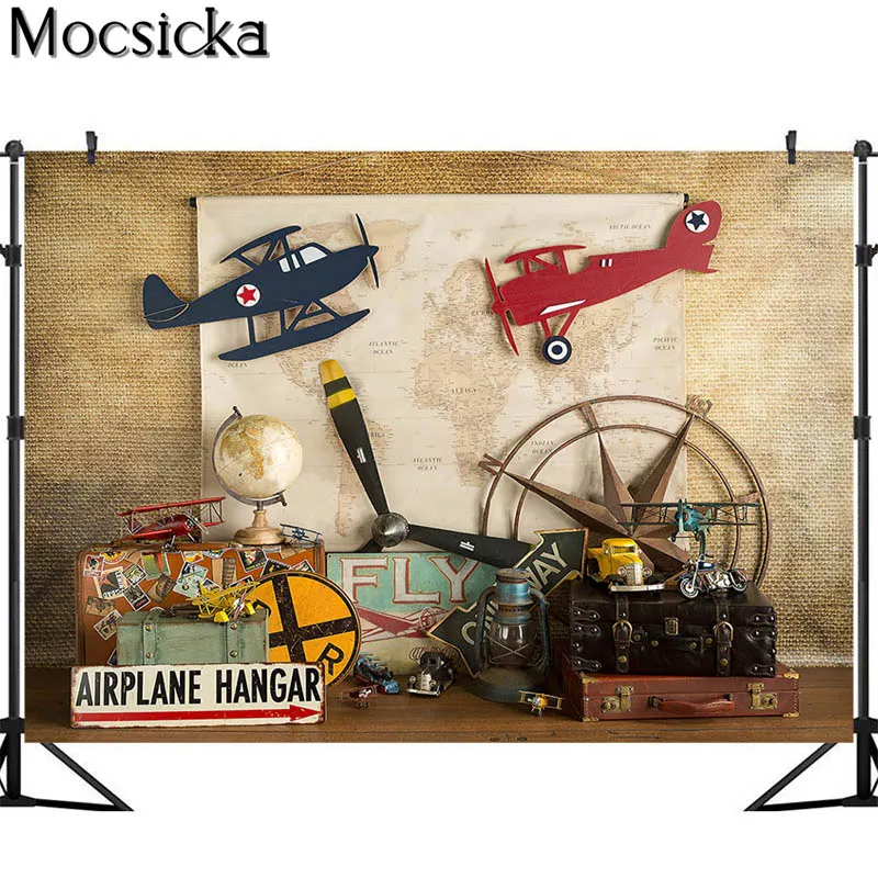 Винтажный фон Mocsicka для фотосъемки мальчиков в ангаре, для 1-го дня рождения