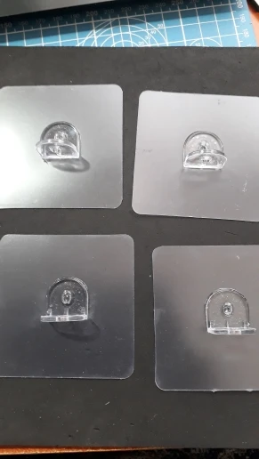 длина уголка 2 см, простой пластик , клейкая основа мягкая , для очень маленькой легкой полочки