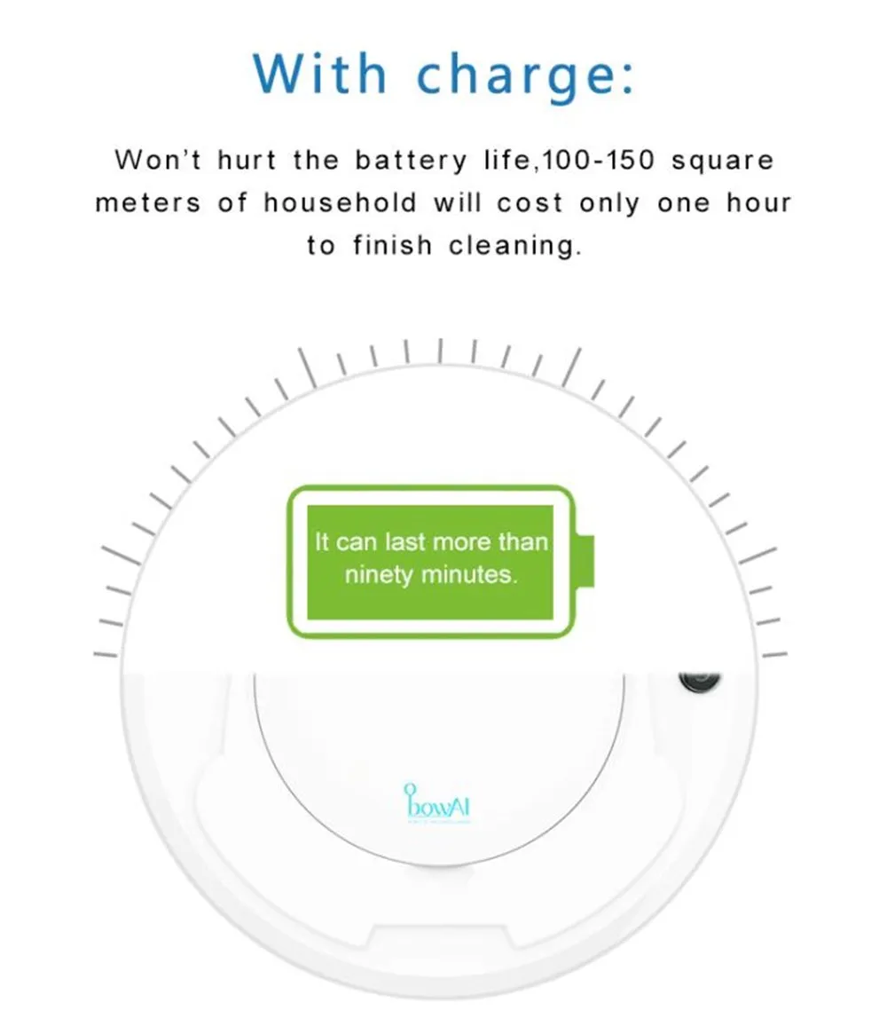 ObowAI 1200Pa умный робот-пылесос автоматическая уборка пола всасывание сухой влажный низкий уровень шума Беспроводная Очистка для дома 150 ㎡Особенности:1. Тщательная очистка: 1200 ПА интенсивного всасывания. Легко впитывает пыль, волосы, семена, крошки хлеба, семена и другие мусор в повседневной жизни, очень большой мусорный бак должен быть Опорожнен только изредка.