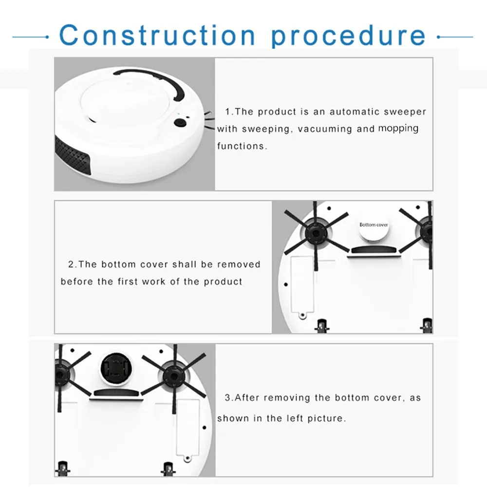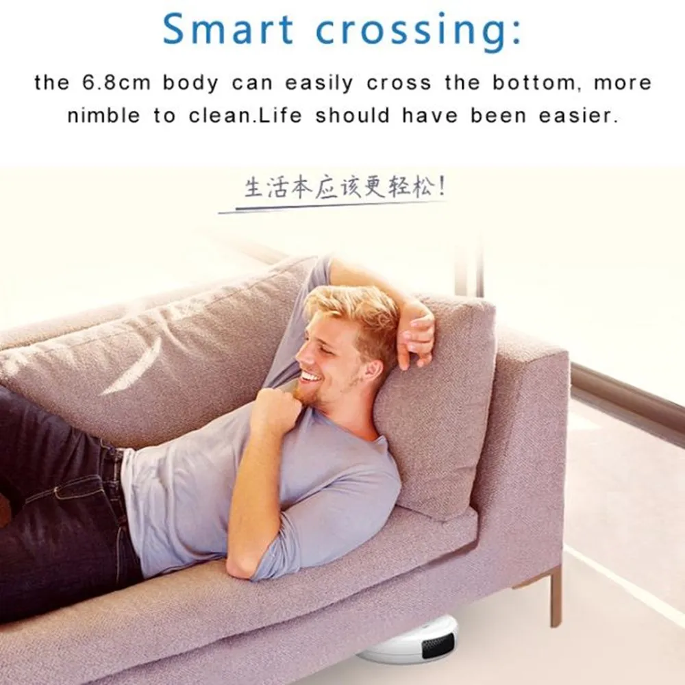 3. Несколько режимов очистки, которые относительно очистят ваш пол с помощью умной навигации по пути. Ультра-тонкий 68 мм дизайн может достигать тех труднодоступных мест, под диван или кровать, решает проблемы нежелательных волокон и волос.4. Быстрая Чистка, без случайных ударов. Встроенные датчики обеспечивают Предотвращение падений, предотвращение столкновений, предотвращение ловушек,5. Система обнаружения местности OBS. С функцией лазания 10 мм, высота скалолазания 15 градусов, интеллектуальная индукция избегания падения.6,40 децибел, низкий уровень шума, интимный, не тревожный, это принесет вам чудесную жизнь весело.7. Зарядка завершена в течение 100 минут, очистка около 150 ㎡. Идеально подходит для плоского пола, как мрамор, плитка, деревянный пол и т. Д.Характеристики:Материал: АБС-пластикБатарея: 3,7 V 1200mAhВремя работы: около 70 минутВремя зарядки: около 2-3 часовПлощадь уборки: 150 ㎡Рабочее напряжение: 3,7 VНоминальная мощность: 3 ВтПылезащитная коробка: около 150 млРабочий шум: <40 дБВсасывание: 1200PAСрок службы: >2 годаВес нетто: 580 г/20,46 унцийЦвет: черный, серый, белыйРазмер (Д * В): 258x6 8 мм/10,16x2,68"Функции: запуск одной кнопкой, подметание, уборка, пылесос, зарядка через USB, универсальное вождение, автоматическое Предотвращение препятствий, защита от падения, низкий уровень шума, сильное всасывание, низкое повторение, высокий охватРуководство по эксплуатации:1. Режим переключения: нажмите на хост-переключатель, уборочная машина входит в рабочий режим и загорается Рабочая лампа. Нажмите главный выключатель снова, чтобы выключить уборочную машину.2. Режим зарядки: Подключите зарядную головку usb-кабеля к зарядному порту уборочной машины и подключите usb-головку к конвертеру для зарядки.3. Состояние зарядки: светильник индикатора зарядки включен, что указывает на то, что зарядка находится в процессе, и выключение означает, что зарядка завершена. Общее время зарядки составляет около 2-3 часов.