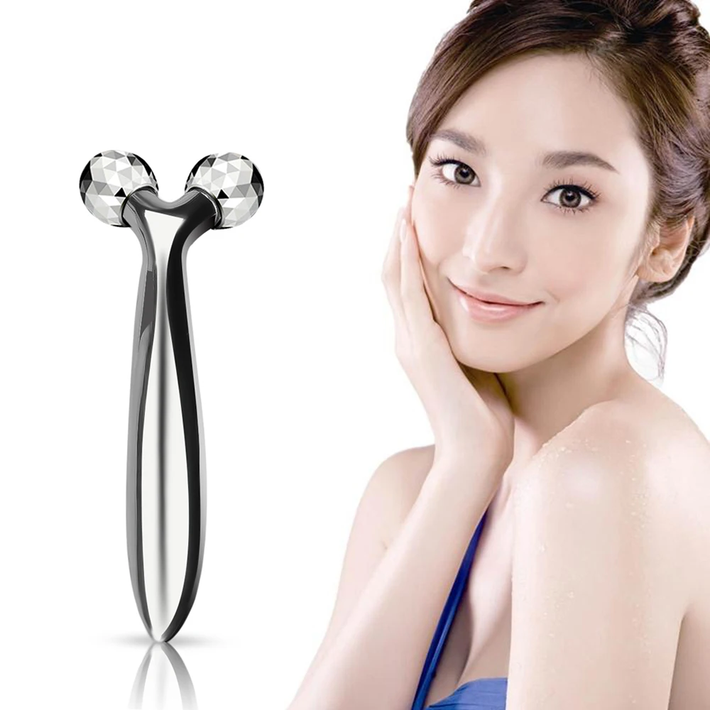 Роликовый массажер, вращающийся на 360 градусов серебристый, для тонкого лица, для удаления морщин