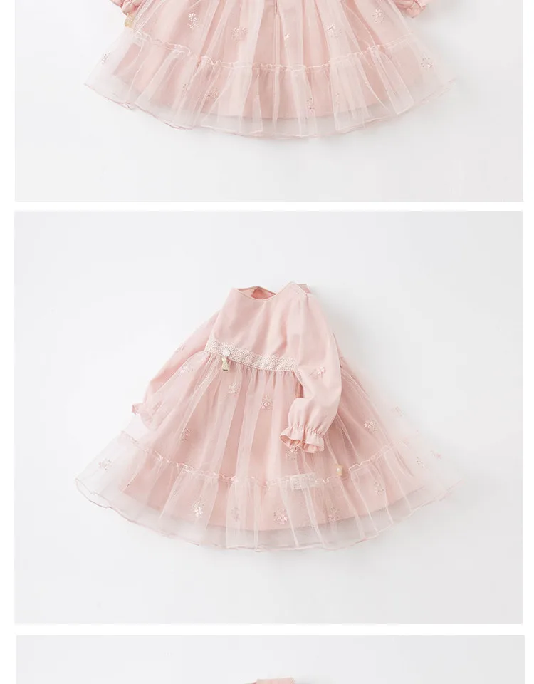 DBJ17132 dave bellaвесеннее милое Сетчатое платье с цветочной вышивкой для маленьких девочек детское модное праздничное платье детская одежда в стиле Лолиты