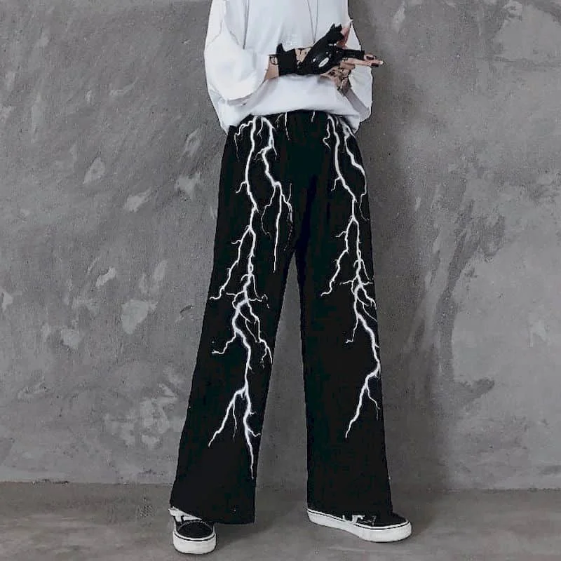 Мужские повседневные брюки, с принтом в виде темных молний, свободные, универсальные, ретро-брюки, прямые, широкие, спортивные штаны, мужские, на осень