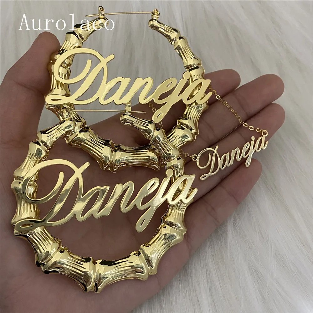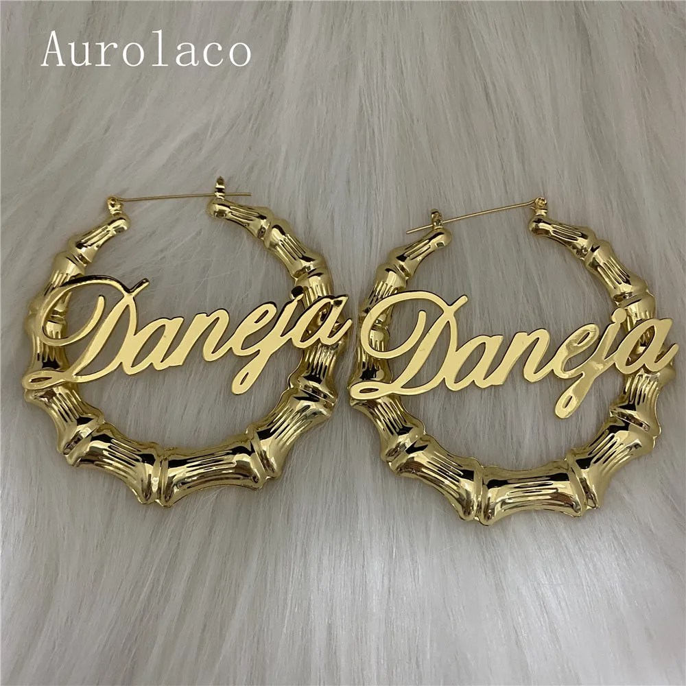 AurolaCo Ювелирный Комплект под заказ новые женские серьги-кольца с именем на заказ Серьги Золото Бамбук праздничные подарки
