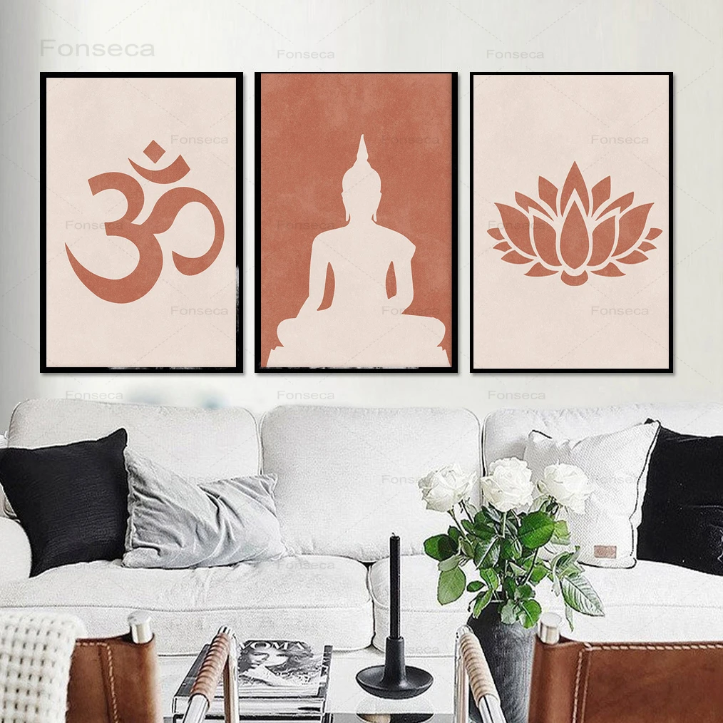 Абстрактная Картина на холсте для йоги, медитации, статуя Будды, Постер лотоса, буддистские принты, постер для украшения гостиной, настенное искусство