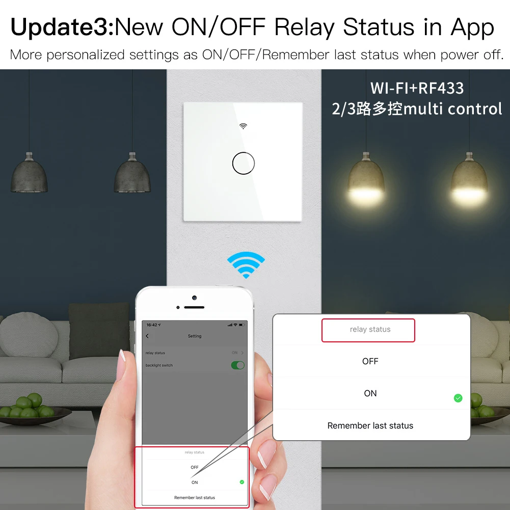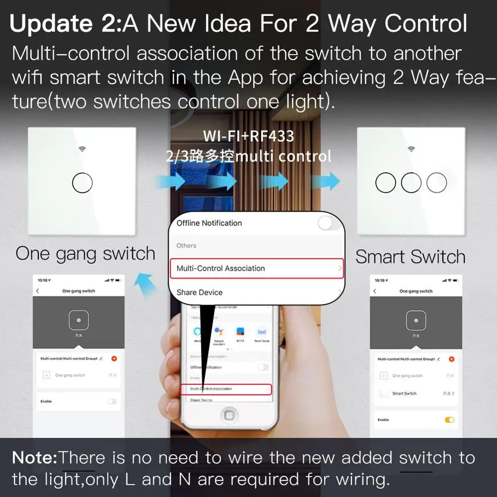 Новый обновленный WiFi Smart RF433 сенсорный выключатель 23 способ ...
