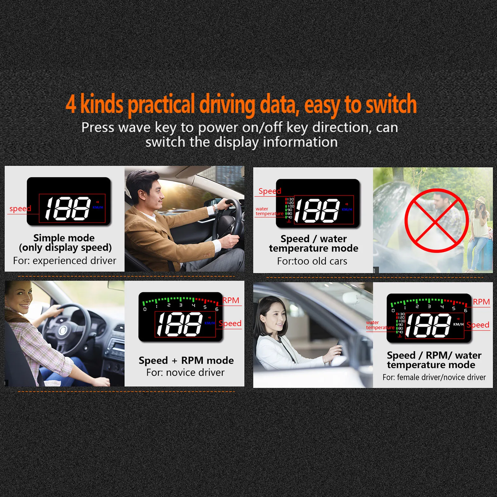 Дисплей на голову A900 HUD, сигнализация для подключения к порту OB...