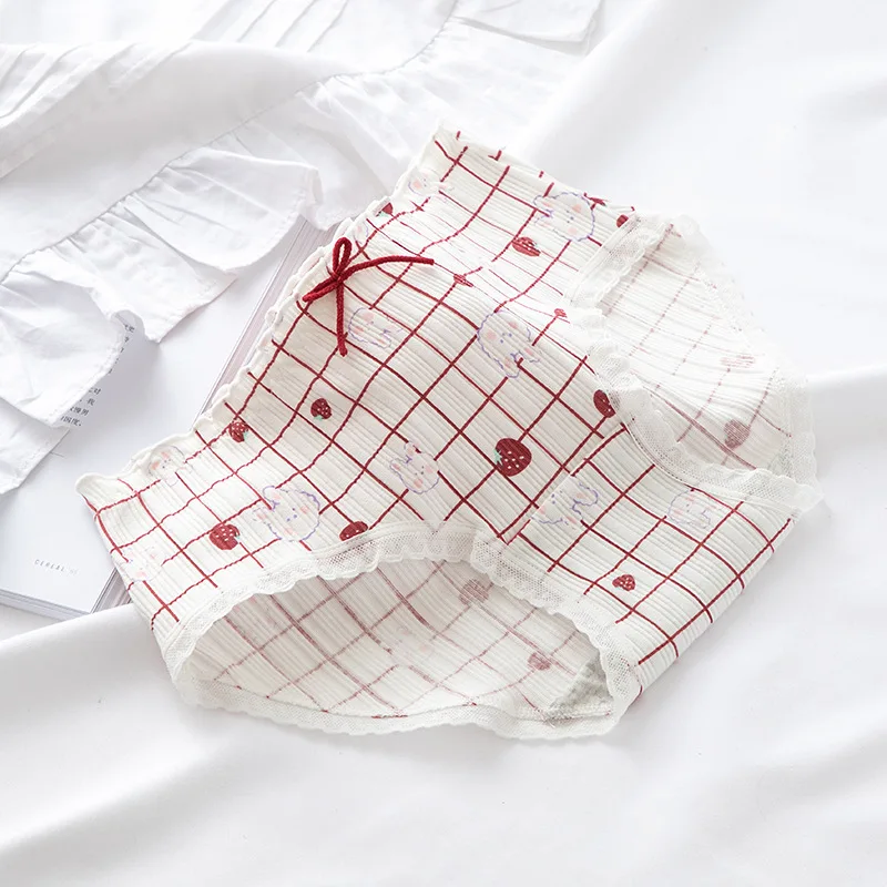 Клубничные трусики для девочек, красное нижнее белье, кроличьи трусы в клеточку, хлопковое нижнее белье в полоску, мягкие удобные трусики