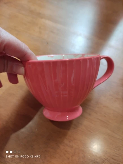 The pattern of the cup is very nice and it has a large capacity. I use it to make milk in the morning