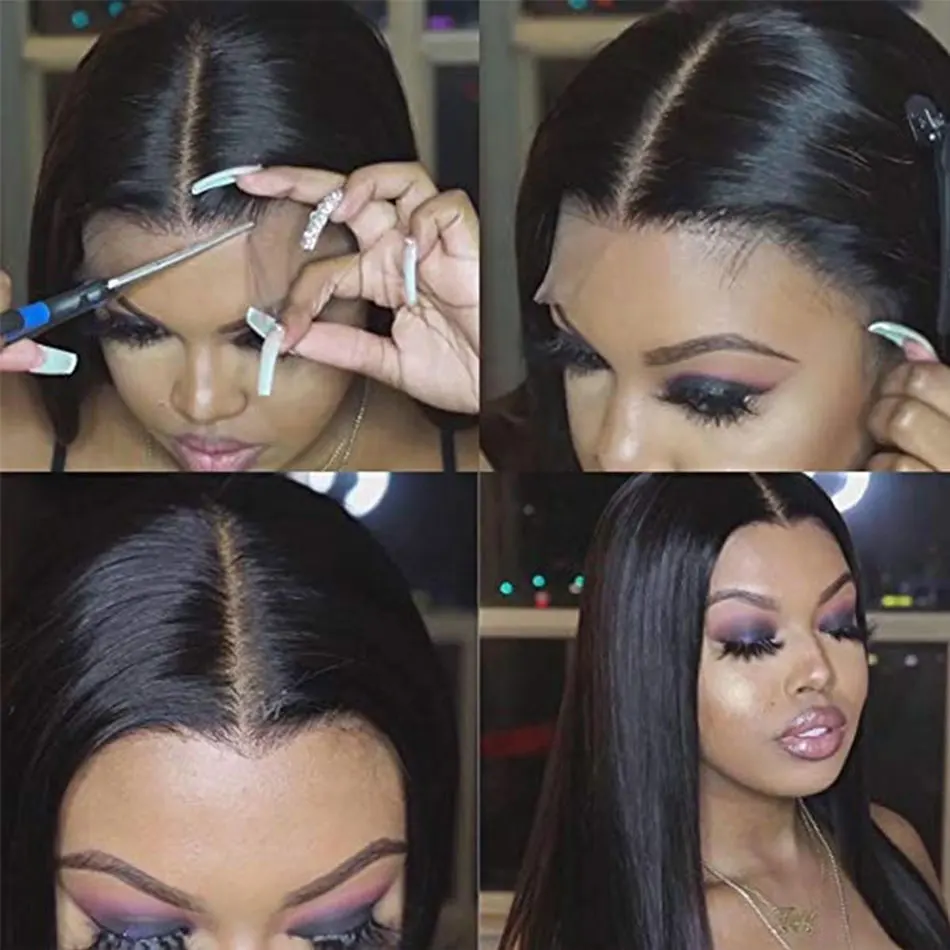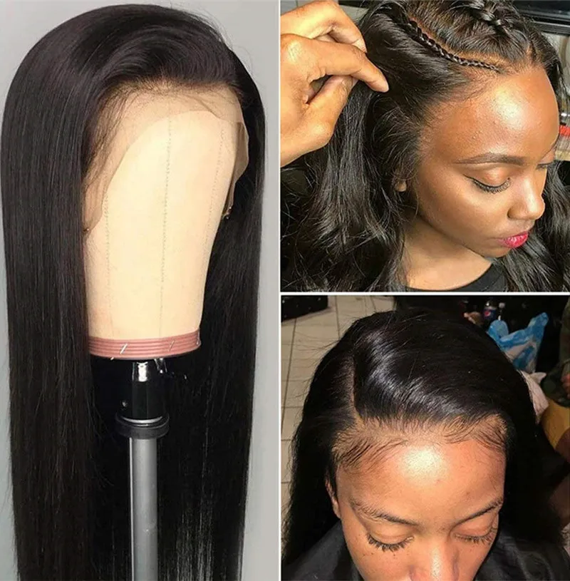 Перуанские прямые парики с фронтальным кружевом, предварительно выщипывающиеся с волосами младенца, человеческие парики 150% плотности, необработанные бесклеевые парики для волос