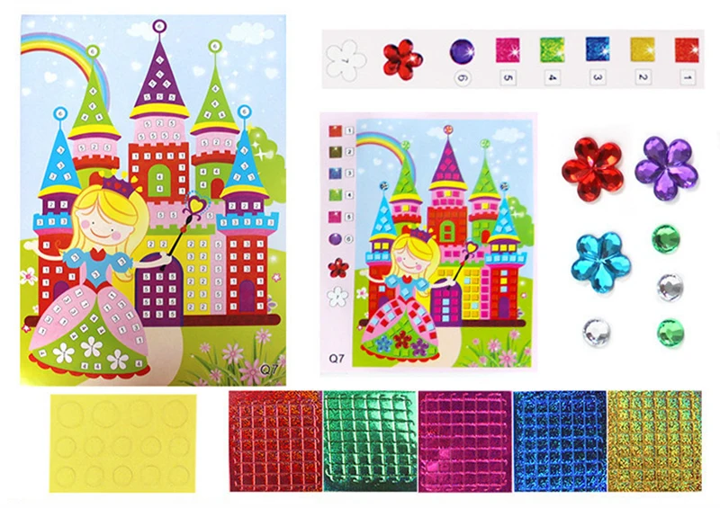 8 шт. мозаичные художественные наклейки, детские игрушки сделай сам, алмазная головоломка, игра ручной работы, творческие развивающие Мультяшные игрушки для детей