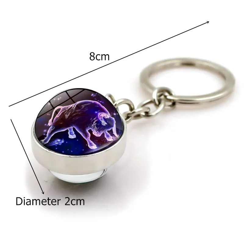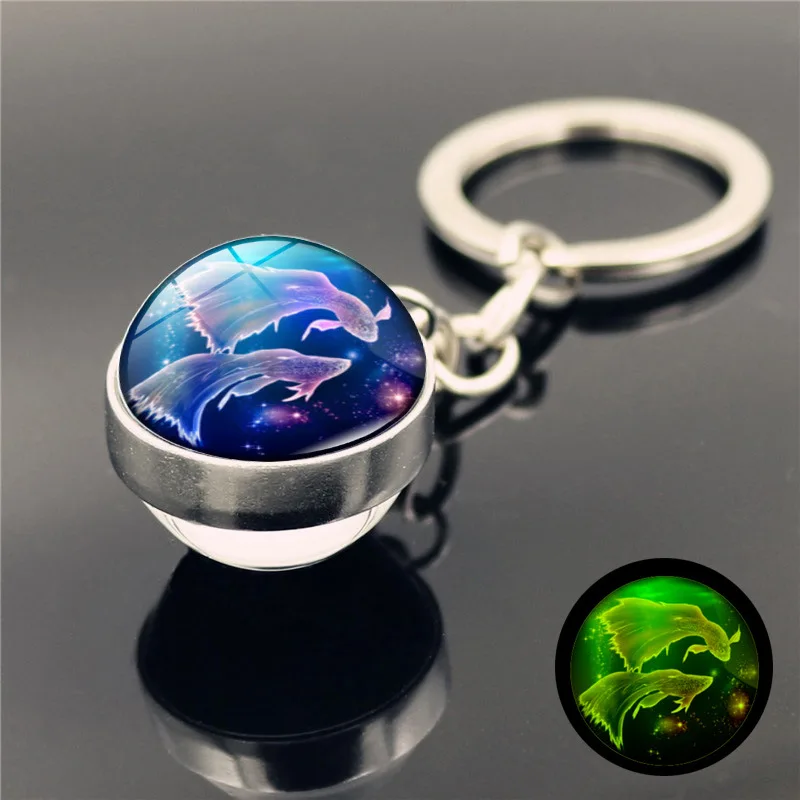 Брелок для ключей со стеклянным шаром, 12 созвездий, светящийся, св...