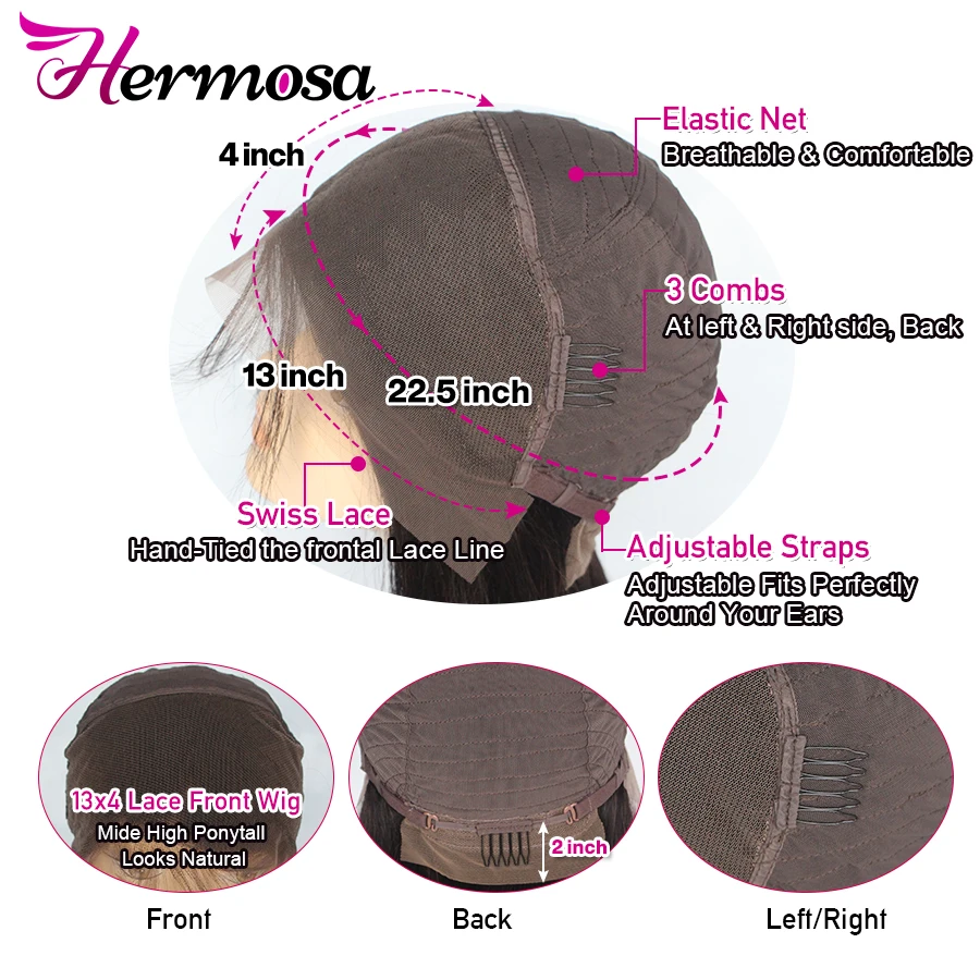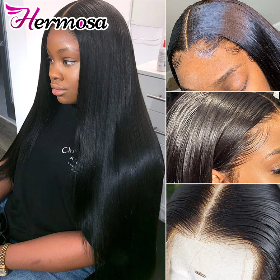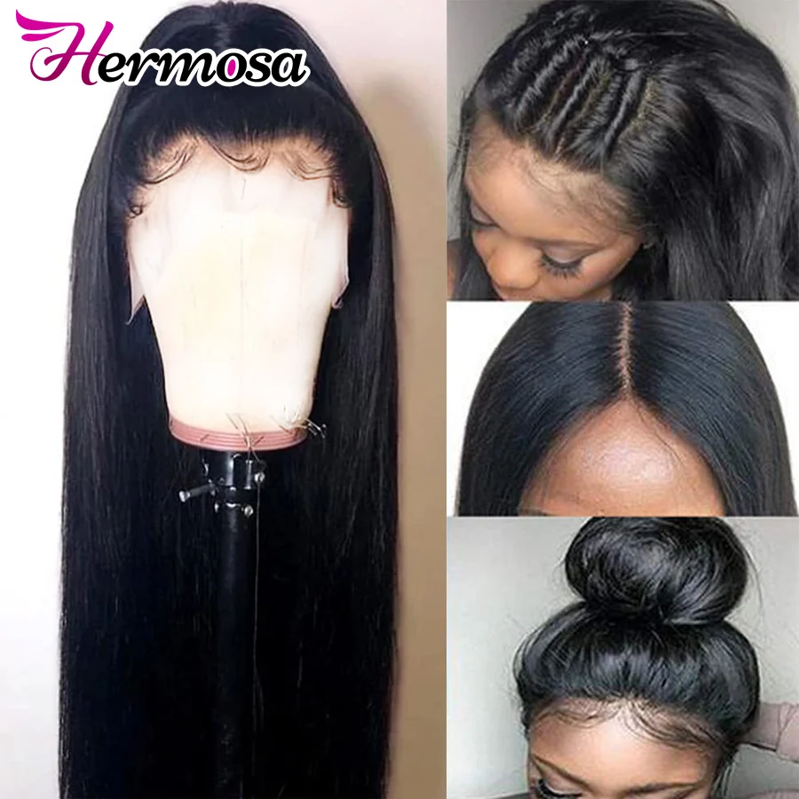 Парики Hermosa перуанские прямые на сетке спереди, предварительно выщипанные, 13x4, на сетке спереди, парики из человеческих волос, 180% плотность, парик на сетке, человеческие волосы