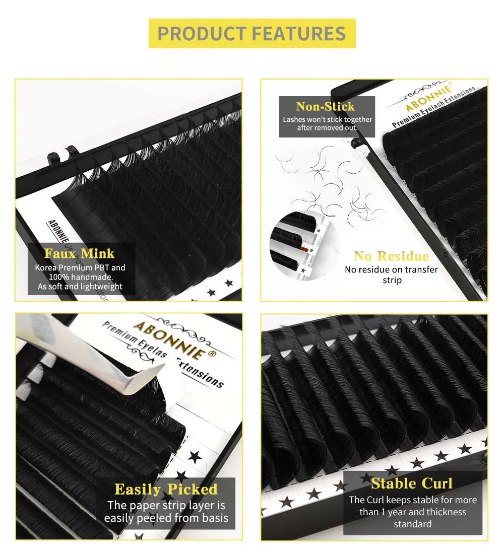 Поставщик накладных ресниц Abonnie, корейские накладные ресницы 8-18 мм, частная этикетка, накладные ресницы из норки CD