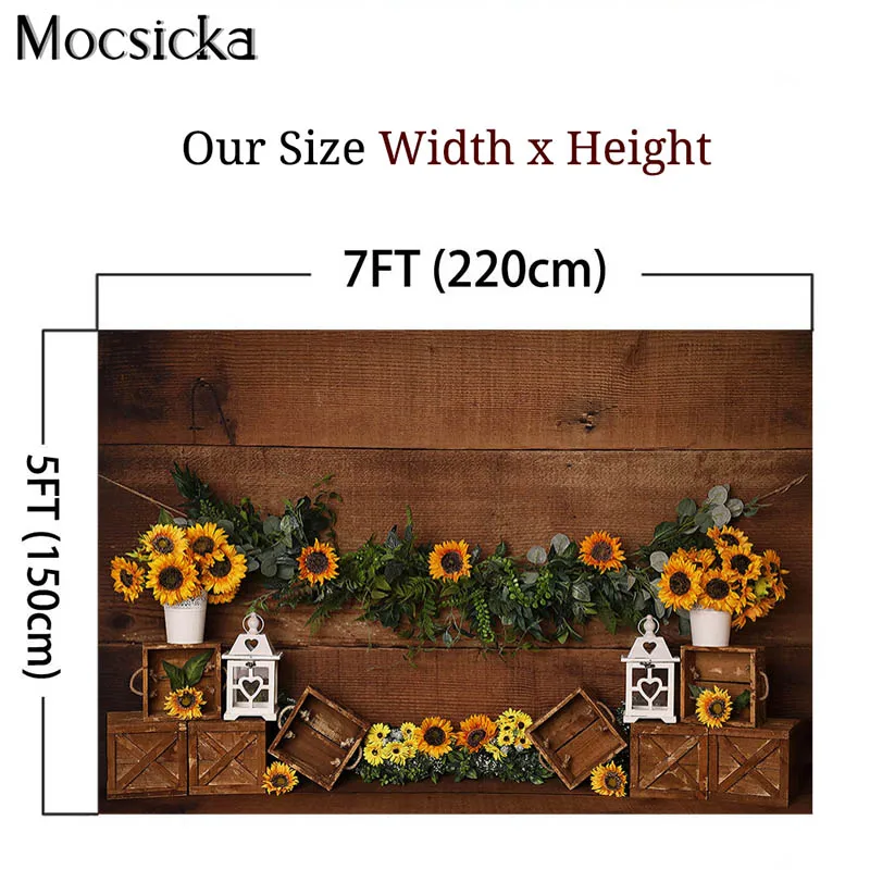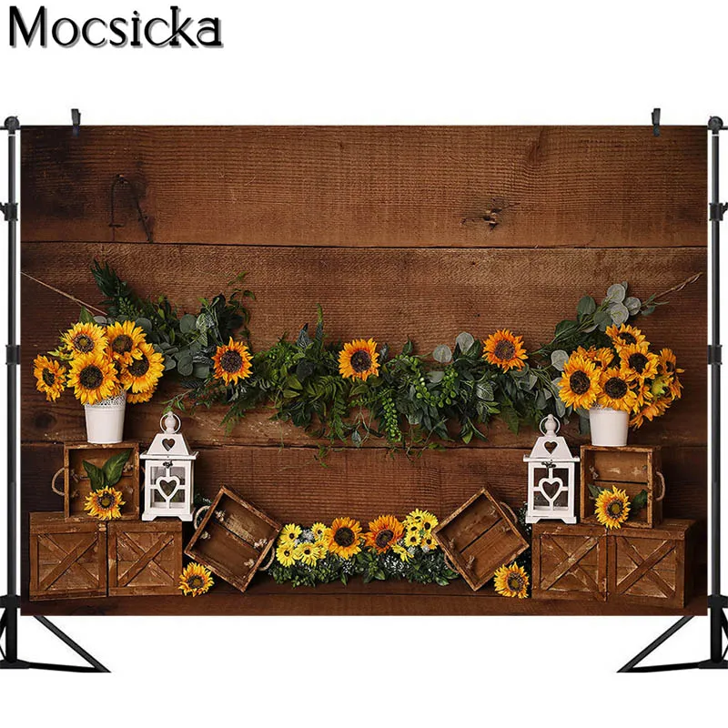 Mocsicka фон для фотосъемки с изображением подсолнуха торта коричневого дерева доска для детей реквизит для первого дня рождения фон для фотостудии
