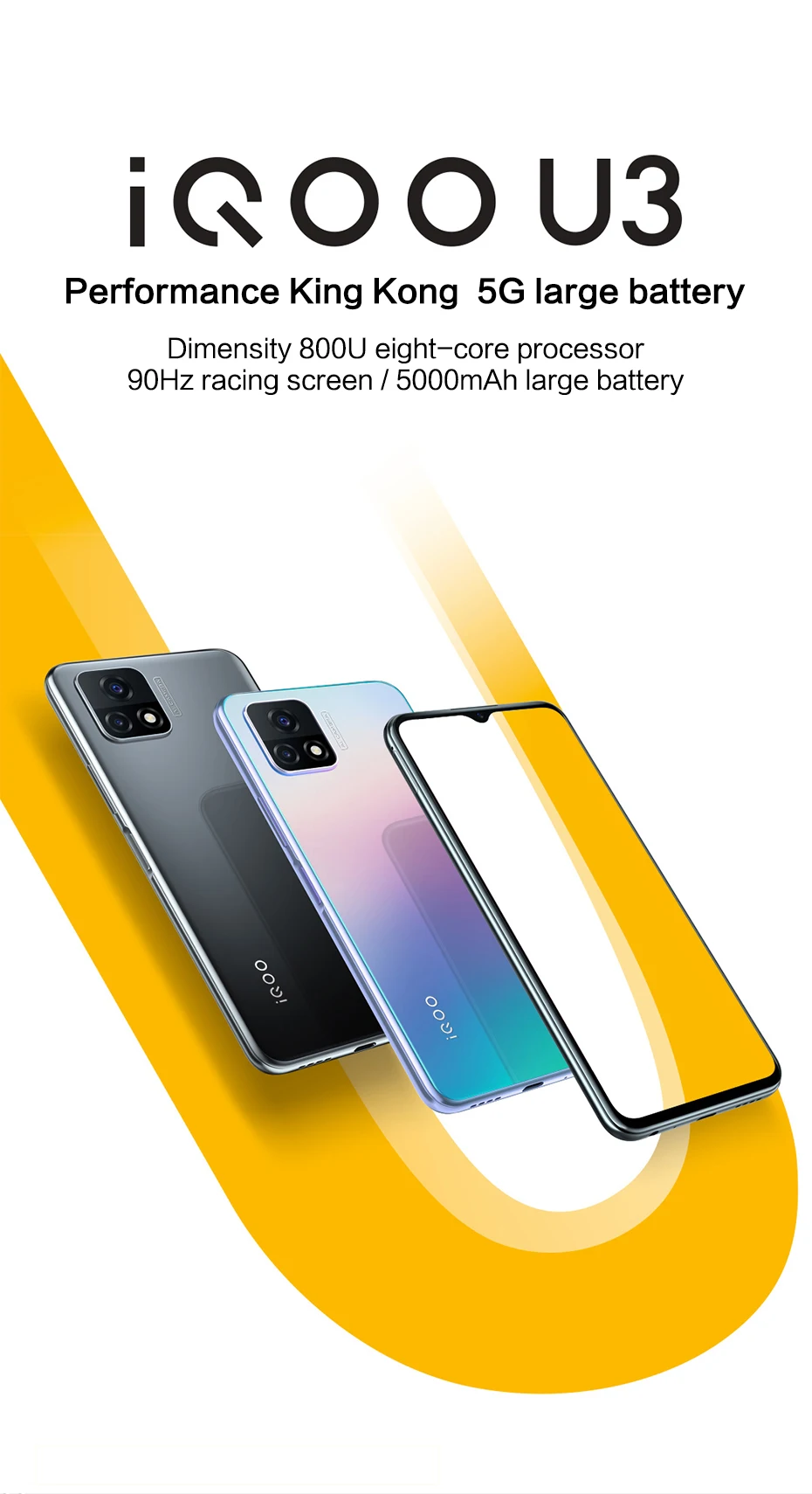 Смартфон IQOO U3 5G, 5000 мА ч, 18 Вт, полноэкранный ЖК-дисплей 6,58 дюйма, Процессор MTK Dimensity 800U, частота обновления 90 Гц