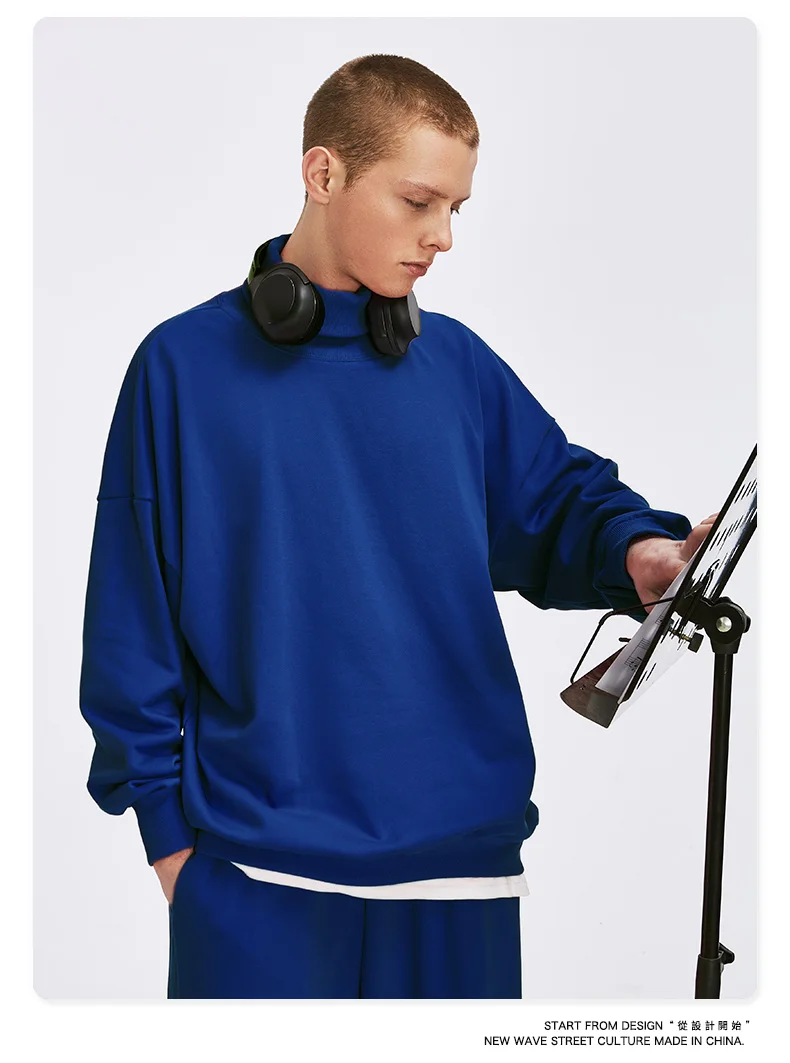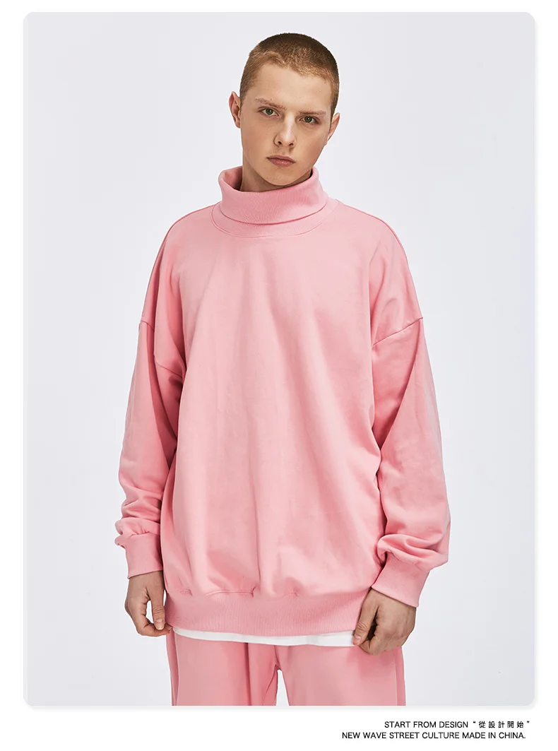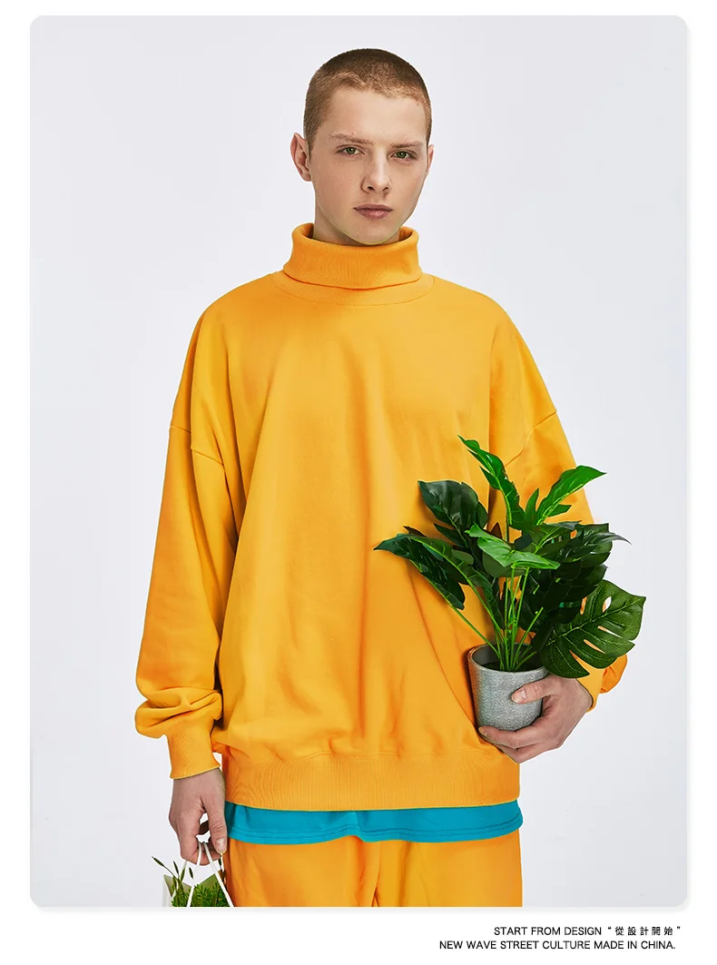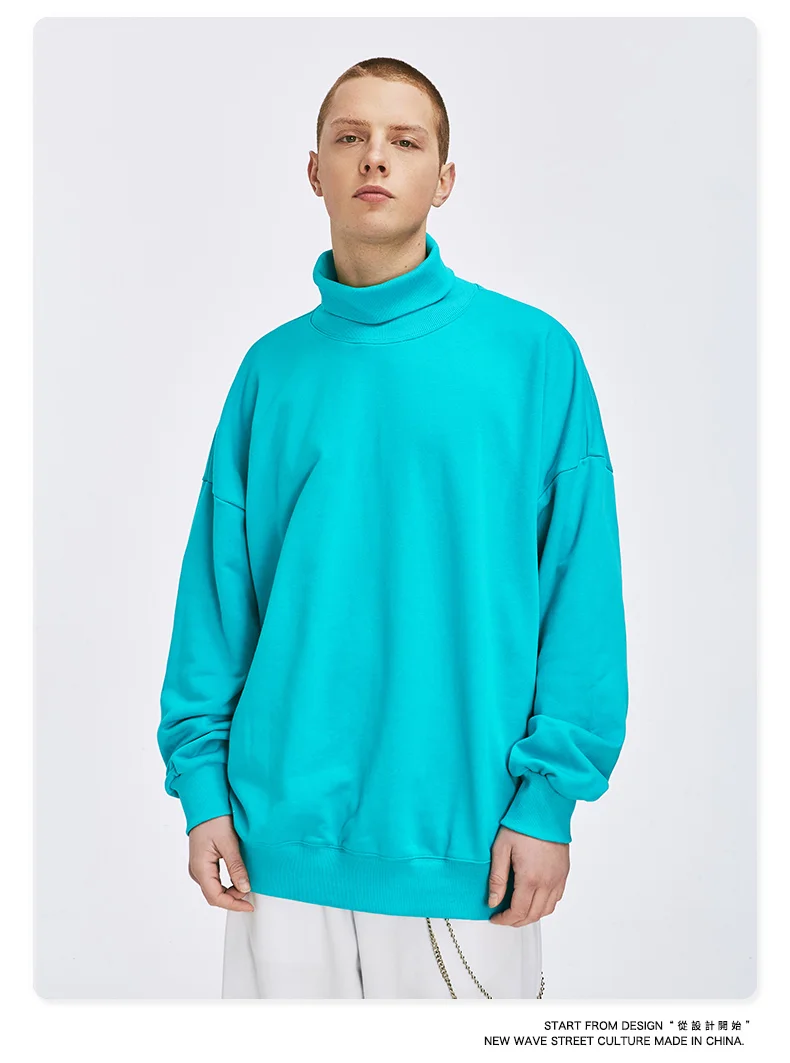 Базовая Толстовка для мужчин и женщин с высоким воротом, Свитшот оверсайз с заниженными плечами, уличная одежда, однотонные пуловеры