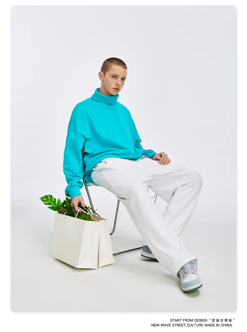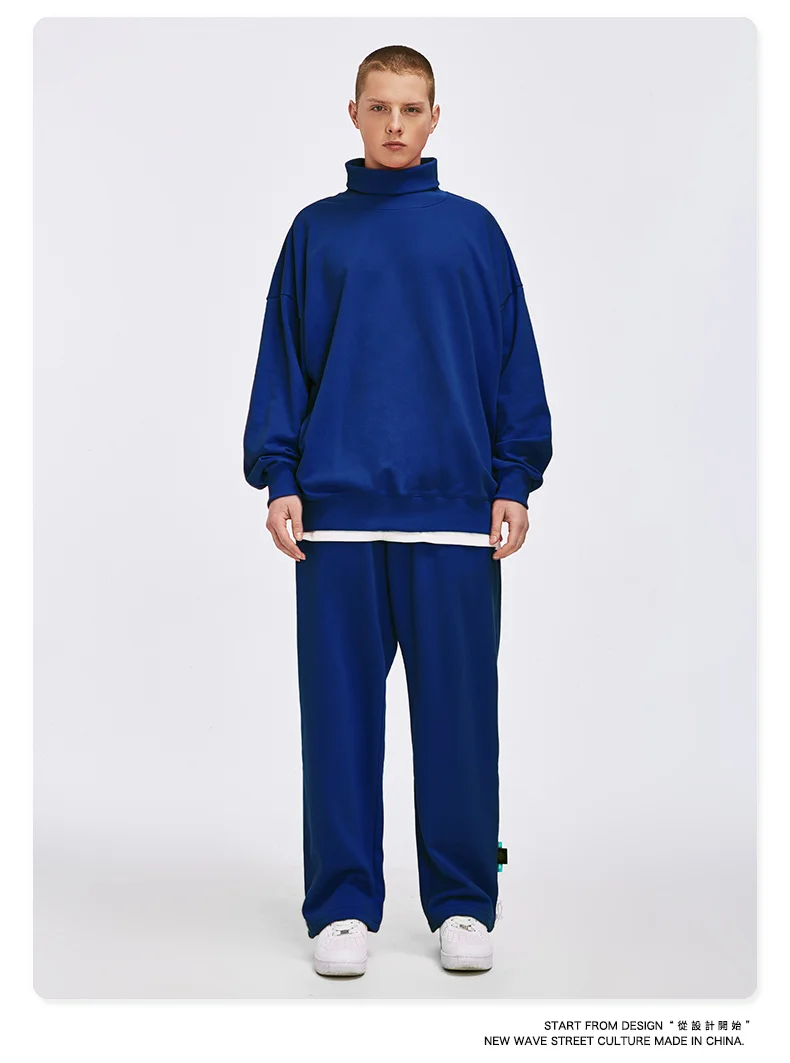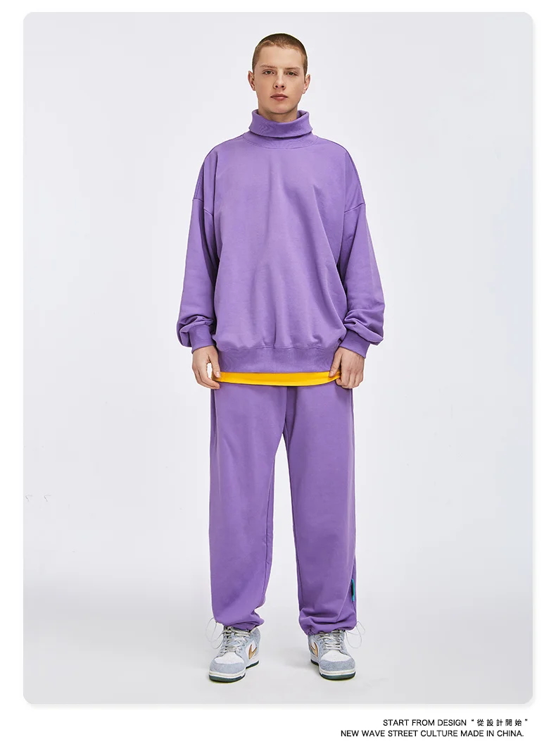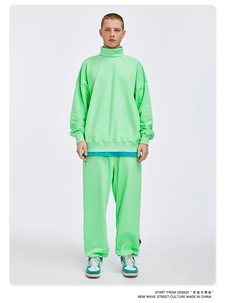 Базовая Толстовка для мужчин и женщин с высоким воротом, Свитшот оверсайз с заниженными плечами, уличная одежда, однотонные пуловеры