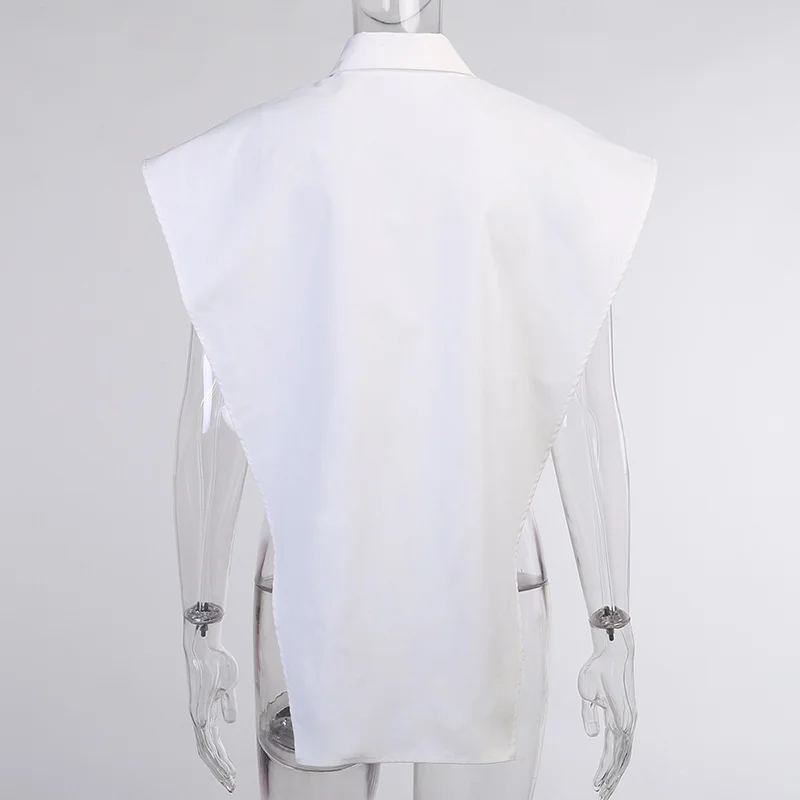 Женская свободная рубашка без рукавов DEAT, повседневная Однотонная рубашка в уличном стиле с воротником с лацканами GD1083, весна 2022