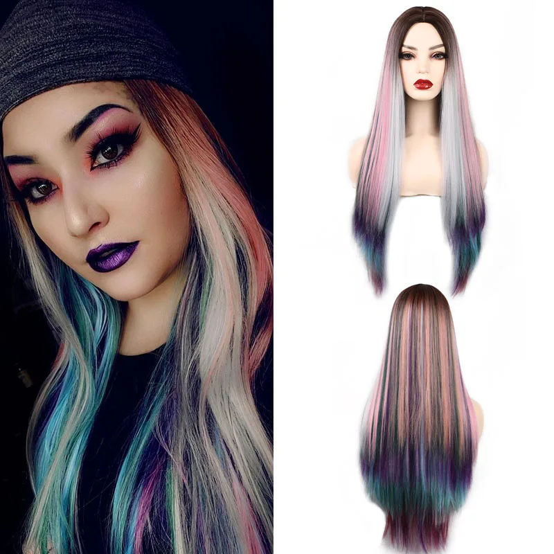Парик женский, синтетический, с эффектом деграде, длинный красный, прямой