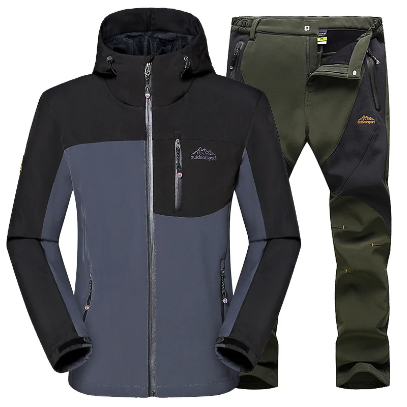 Зимние флисовые теплые мужские комплекты, военная тактическая Униформа, уличная ветрозащитная водонепроницаемая одежда для пешего туризма, скалолазания, охоты, куртка + брюки