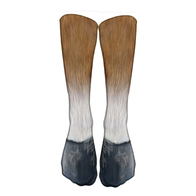 Они не доходят до колена, они короче. Это черные носки, вы не можете увидеть ногу животного.