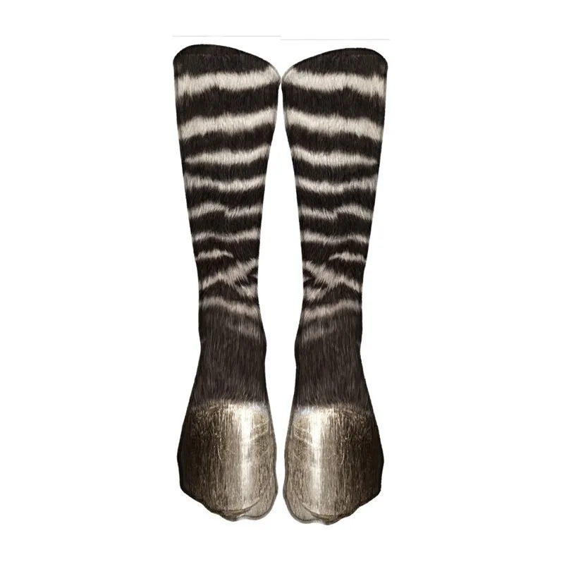 Модные женские длинные носки до колена с 3D принтом, эластичные хлопковые Компрессионные спортивные велосипедные носки унисекс в виде лап животных, зимние теплые носки до икры