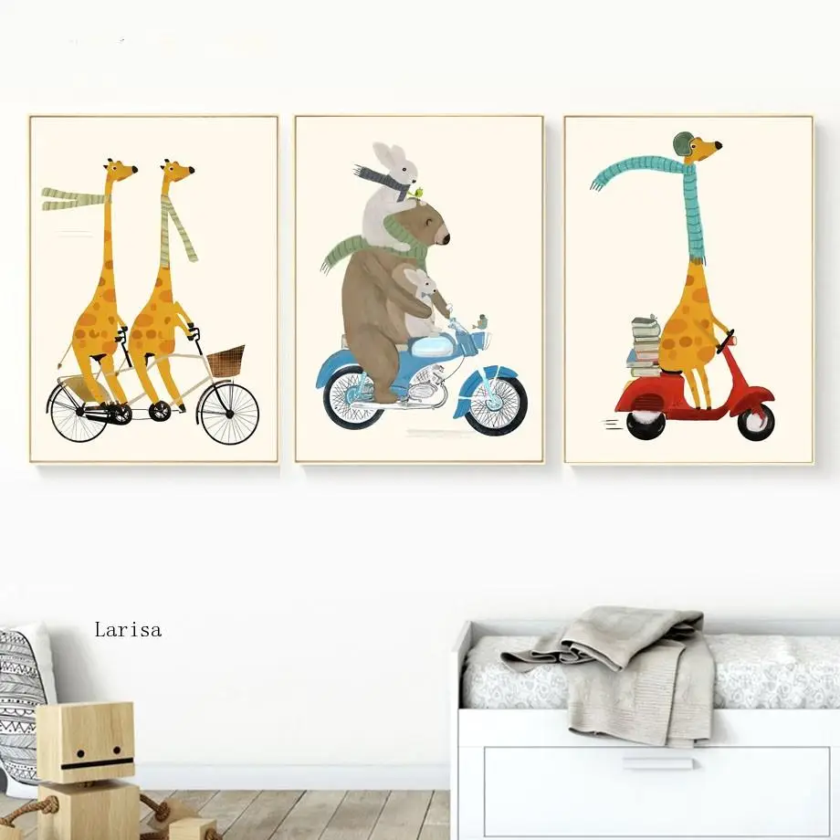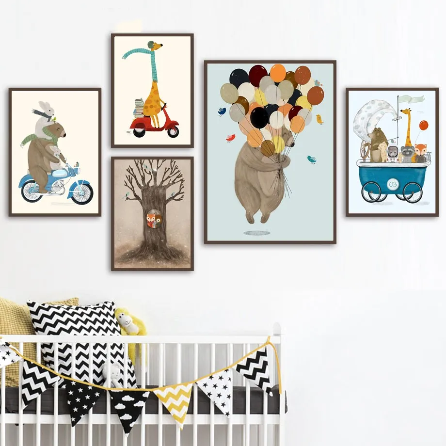 Милый жираф кролик луна воздушный шар мотоцикл настенная живопись х...
