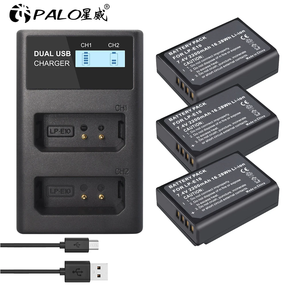 PALO LP-E10 LPE10 LP E10 камера батарея + LCD USB двойное зарядное устройство для Canon EOS 1100D 1200D 1300D 2000D 4000D Rebel T3 T5 T6 KISS X50 X70 L10