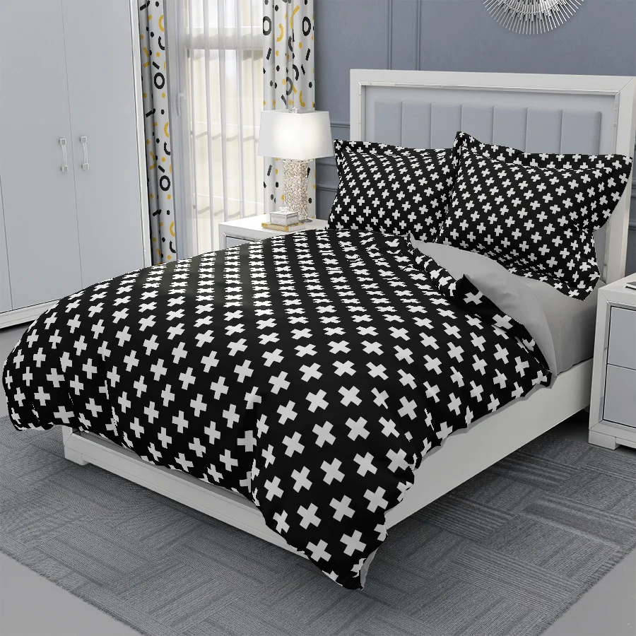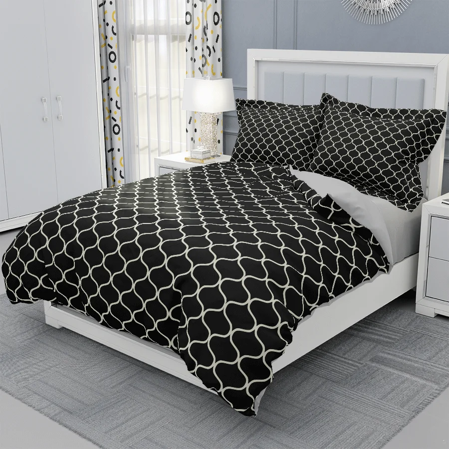 Комплект постельного белья с геометрическим рисунком, роскошный двойной пододеяльник 220x240, размер Queen, черный, покрывало для кровати King, евро, пододеяльник