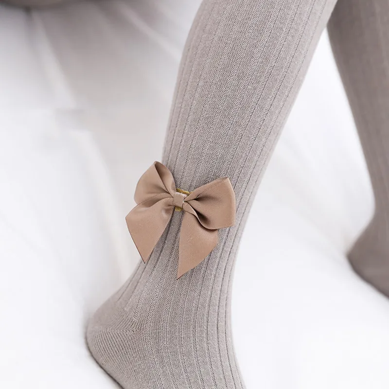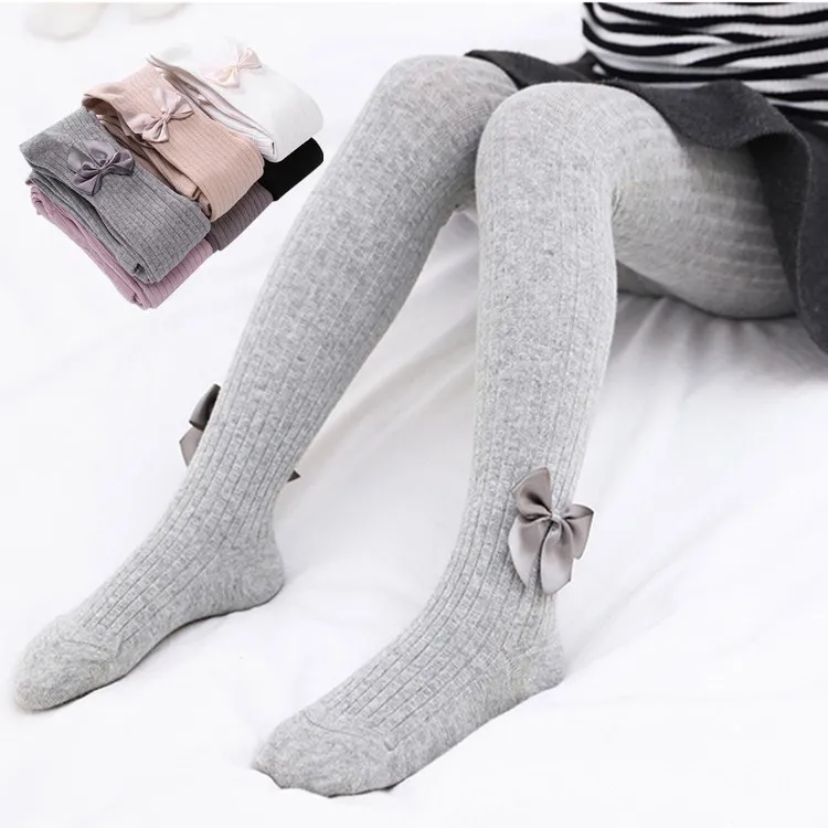 Колготки для девочек 0-8 лет, Детские весенне-осенне-зимние колготки с бантом, хлопковые колготки для маленьких девочек, детские вязаные колготки для младенцев