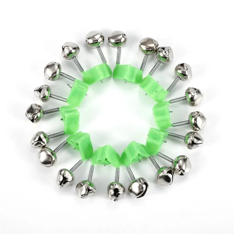 10 шт.лот сигнализатор поклевки для рыболовной удочки, Колокольчик для удочки, зажим для удилища, зажим, кольцо с колокольчиками, Зеленый ABS рыболовный аксессуар, уличные рыболовные инструменты
