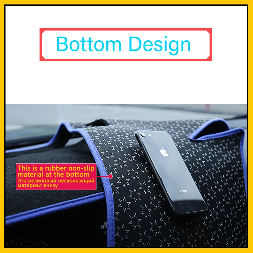 Особенности и описания: -- Это коврик для приборной панели, который уникален тем, что он имеет нескользящую заднюю часть. Передовая ткань не только уменьшает и поглощает блики солнечного света, но и идеально подходит для украшения интерьера.