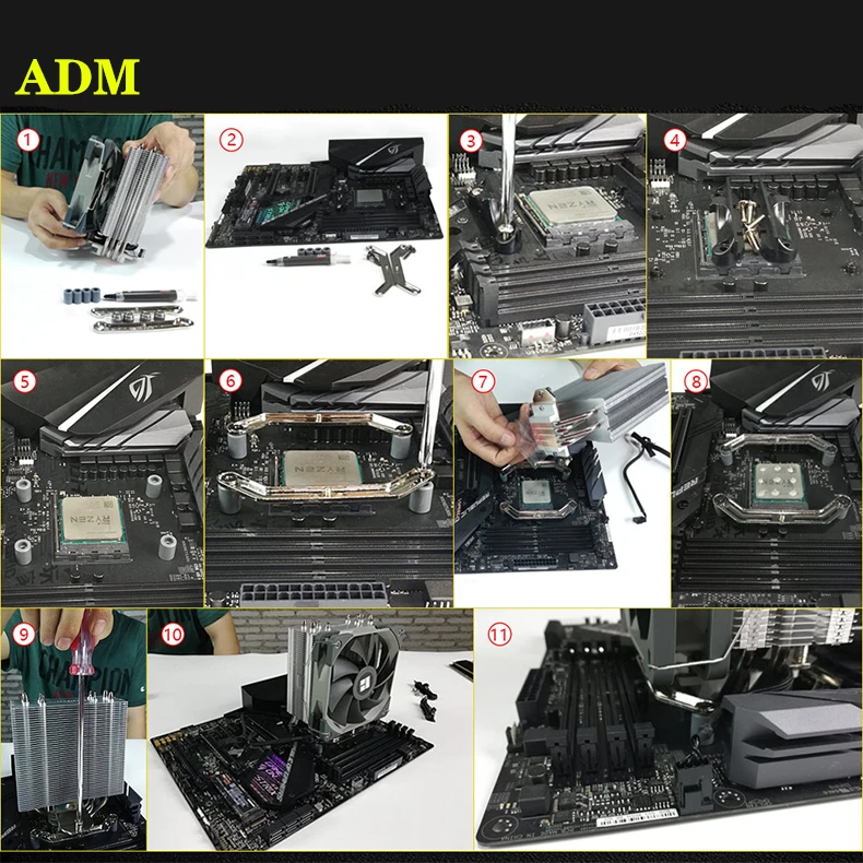 Охладитель для ЦП с радиатором для LGA1155 1156 2011 AMD AM4, 12 см